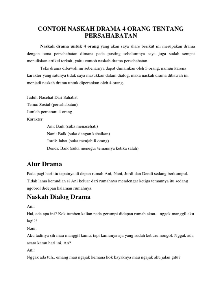 Contoh Naskah Drama 4 Orang Tentang Persahabatan Pdf